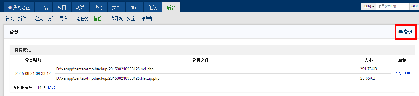 三、登录禅道后台进行备份