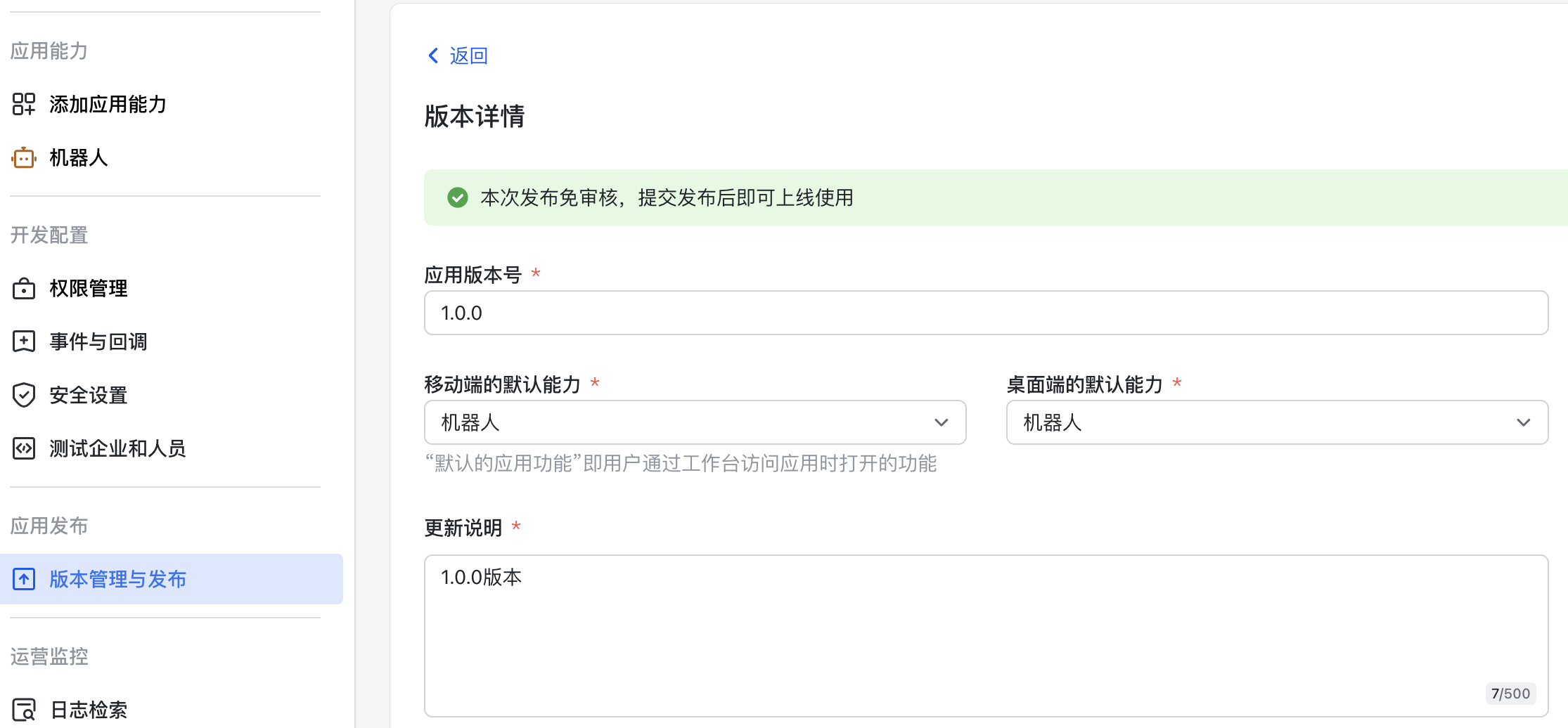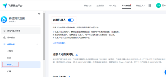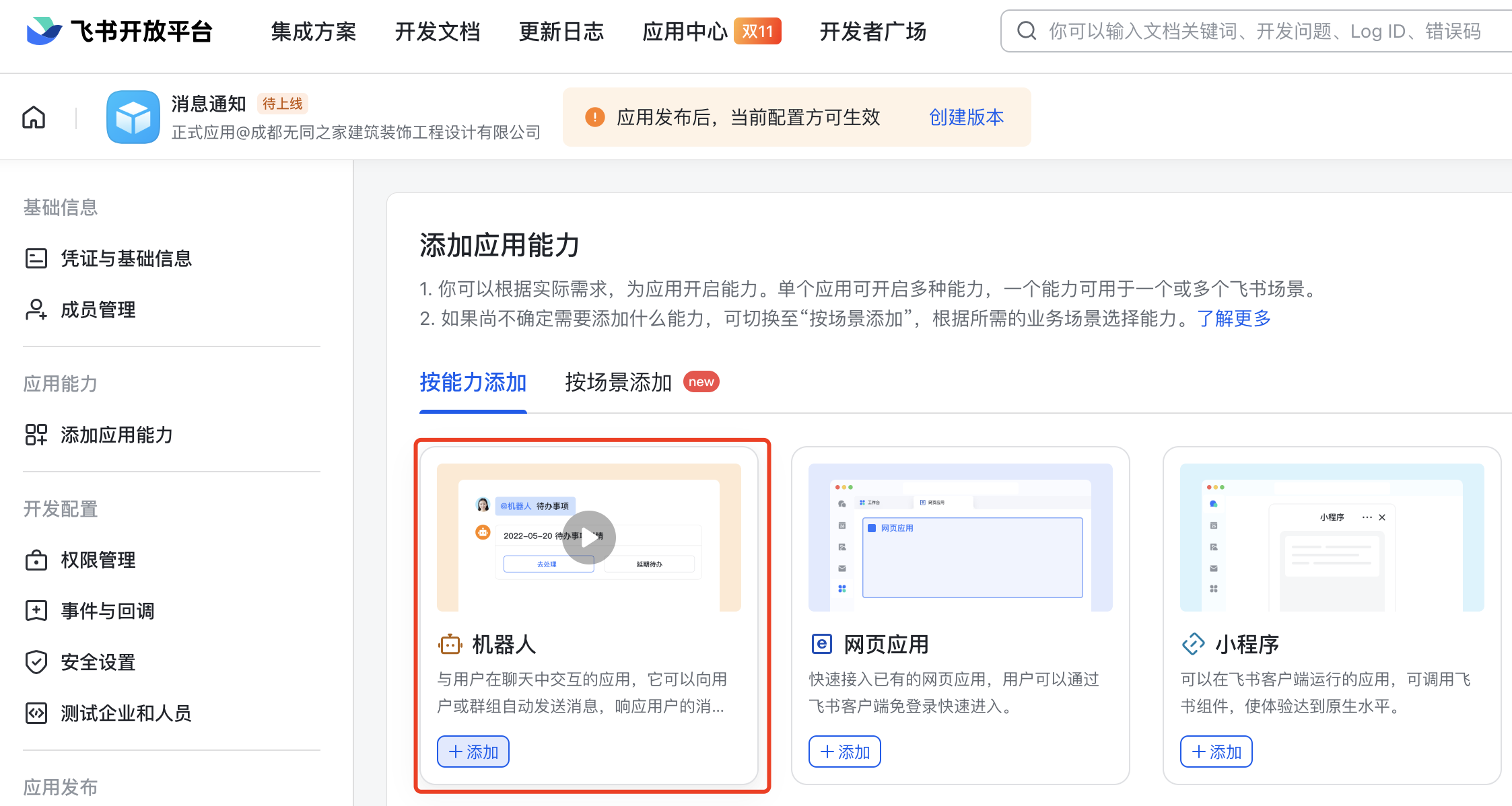 在应用能力中添加“机器人”