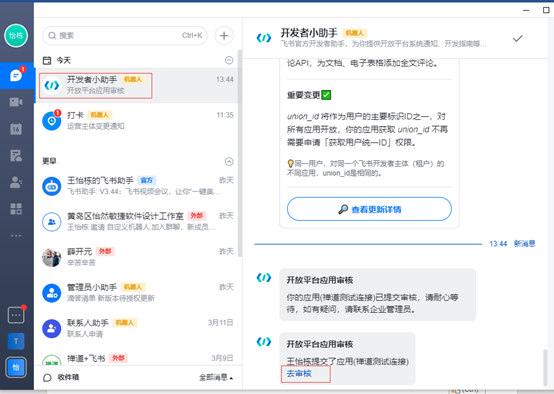 集成飞书消息通知 分享链接