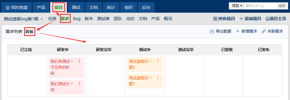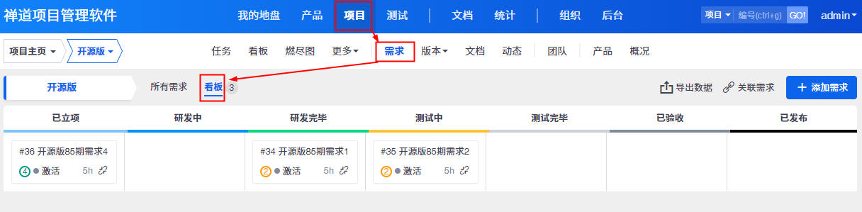 9.6版本开始,项目--需求新增看板功能。