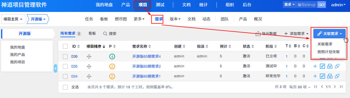 关联的需求状态必须是激活的(评审通过,不能是草稿)
