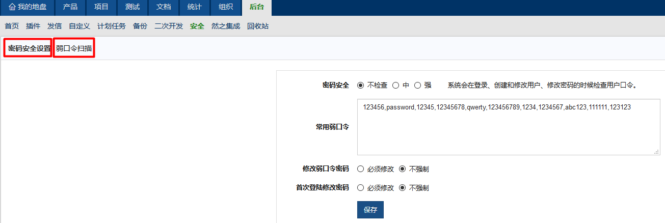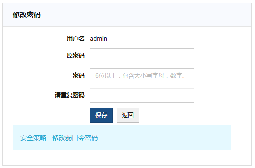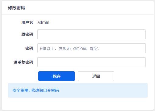 系统会检测密码安全级别,提示修改弱口令密码,按照提示修改即可。