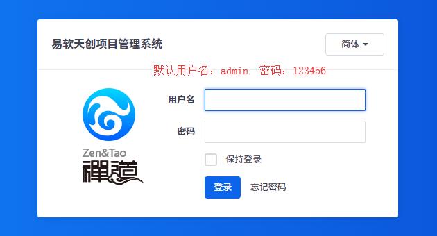 4.1 禅道项目管理软件的登录帐号是admin,密码是123456,请登录之后尽快修改自己的密码。