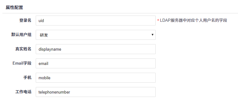 登录名填的是LDAP服务器中所对应的用户名字段,如下图: