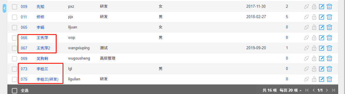 - 在真实姓名后面加编号,例如 李国庆,李国庆2。