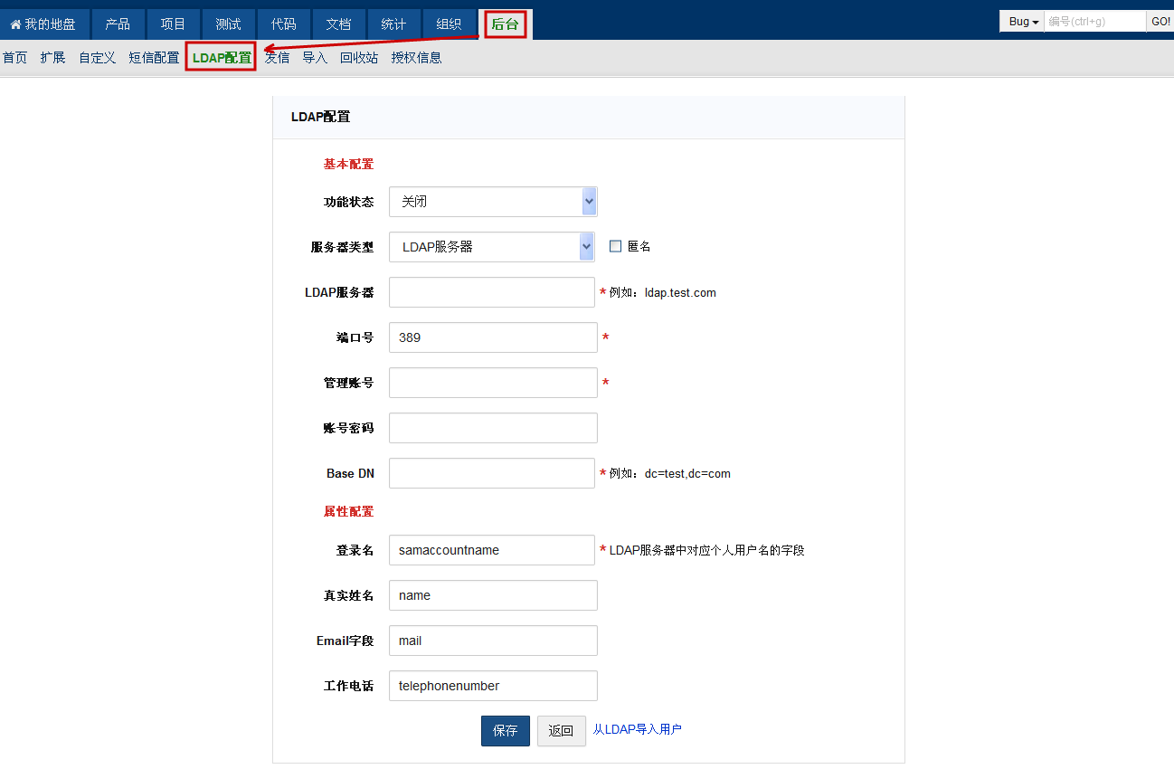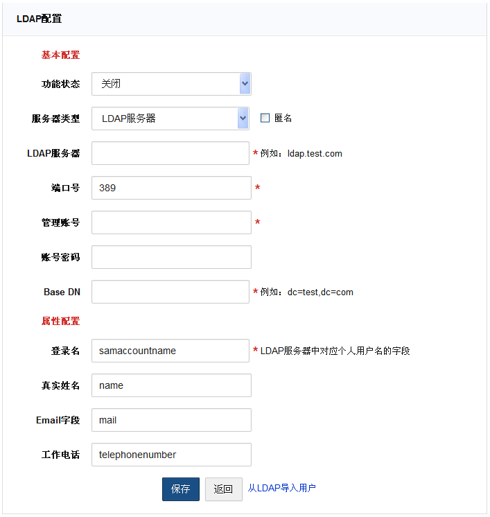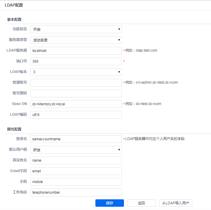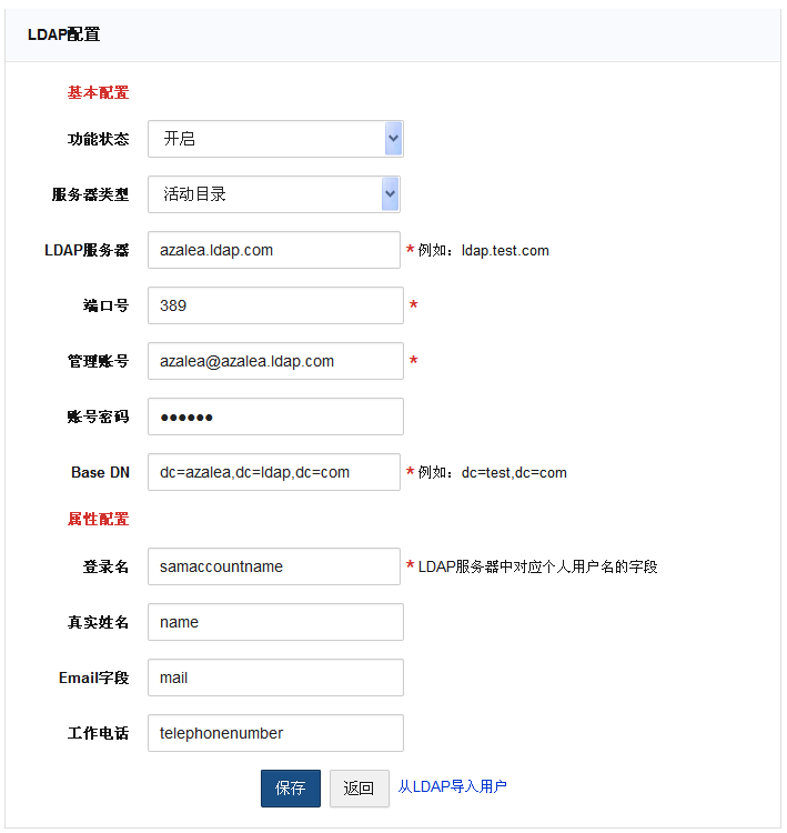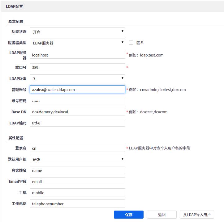 配置成功后,点击 从LDAP导入用户 按钮,即可导入用户。