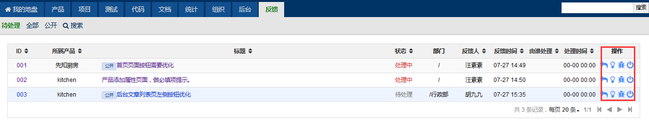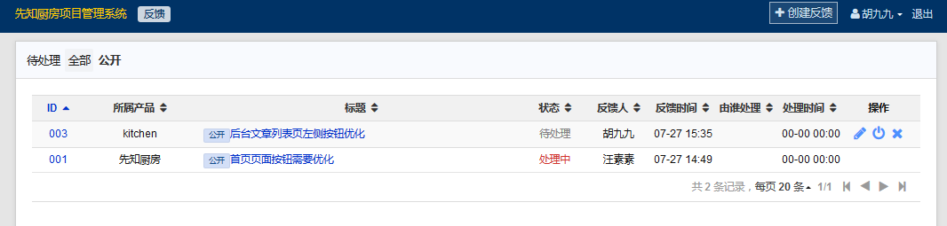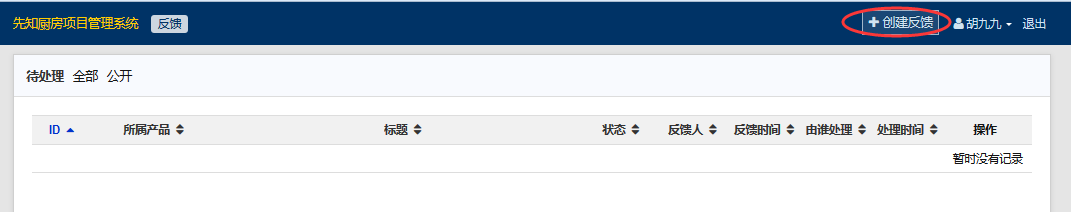 2.2 提交的反馈内容,可以在反馈列表中查看。提供 待处理 全部 公开 3个检索查看标签。