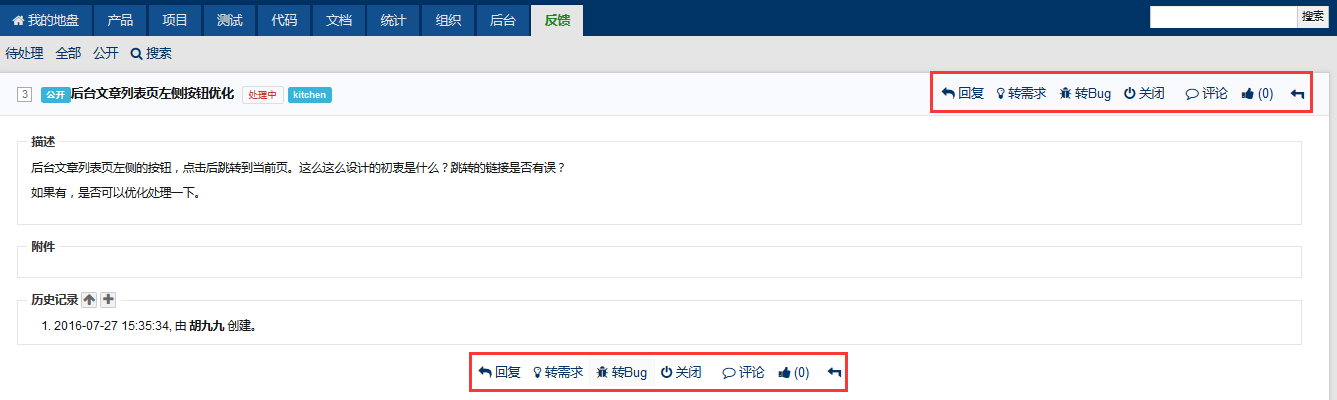 提交的问题,技术人员可以直接回复、转需求和转Bug操作。