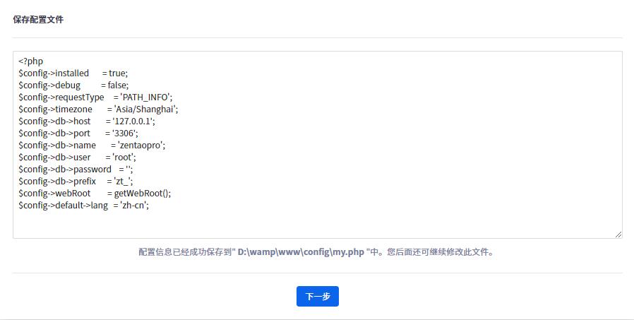 3.安装中出现访问禅道下文件权限问题,按提示执行命令。