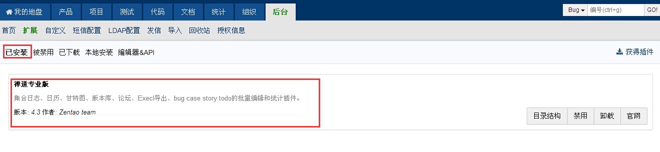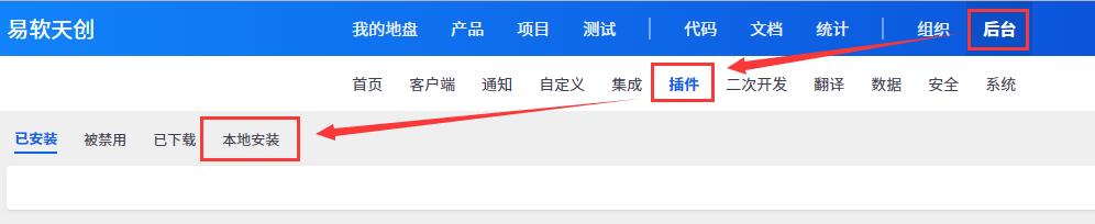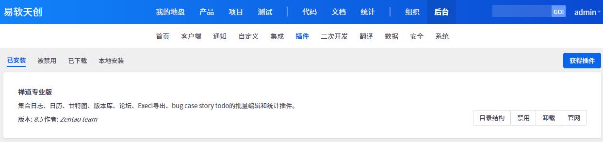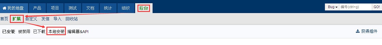 5.1 使用管理员登录禅道,进入后台管理,选择插件管理,点击本地安装