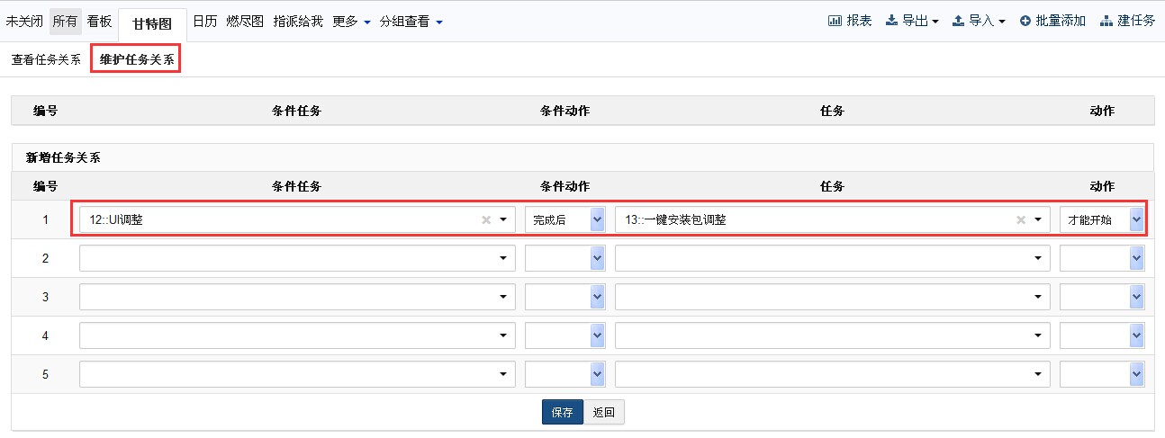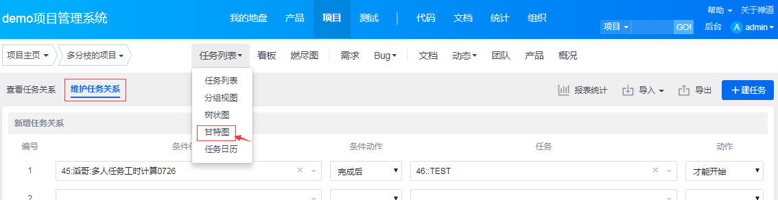 禅道实现了标准的四种任务依赖关系。