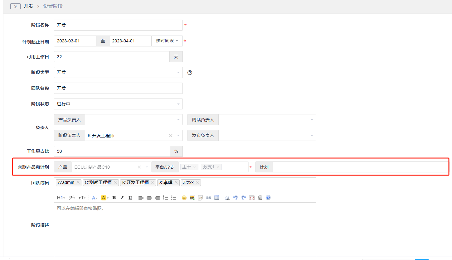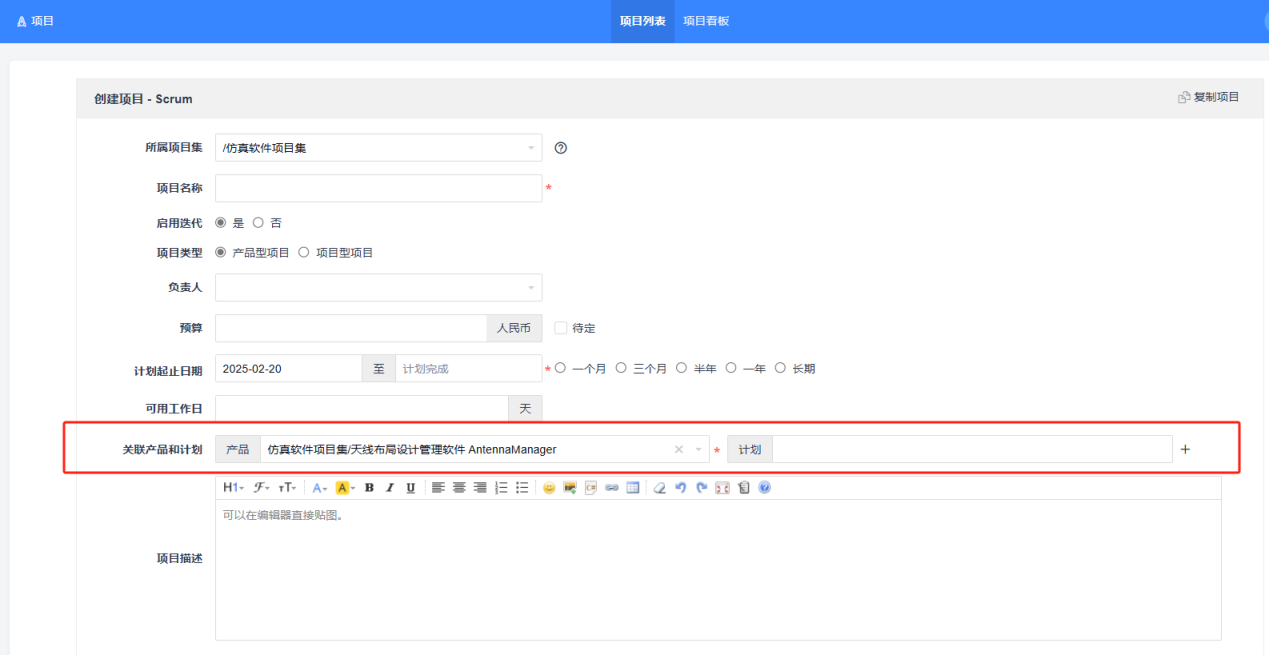 图:项目关联产品计划