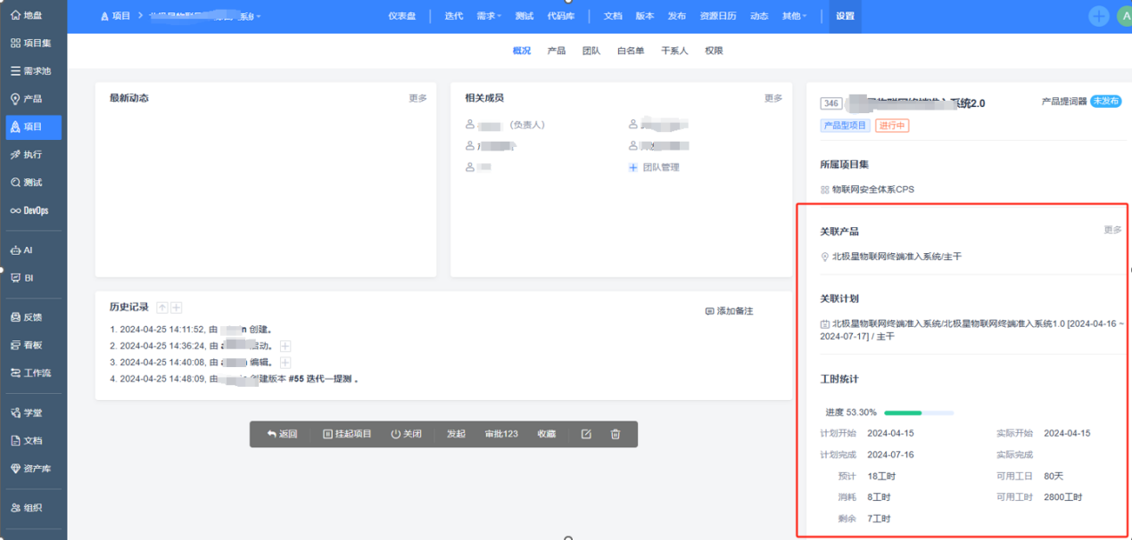 图:在项目信息中查看关联计划