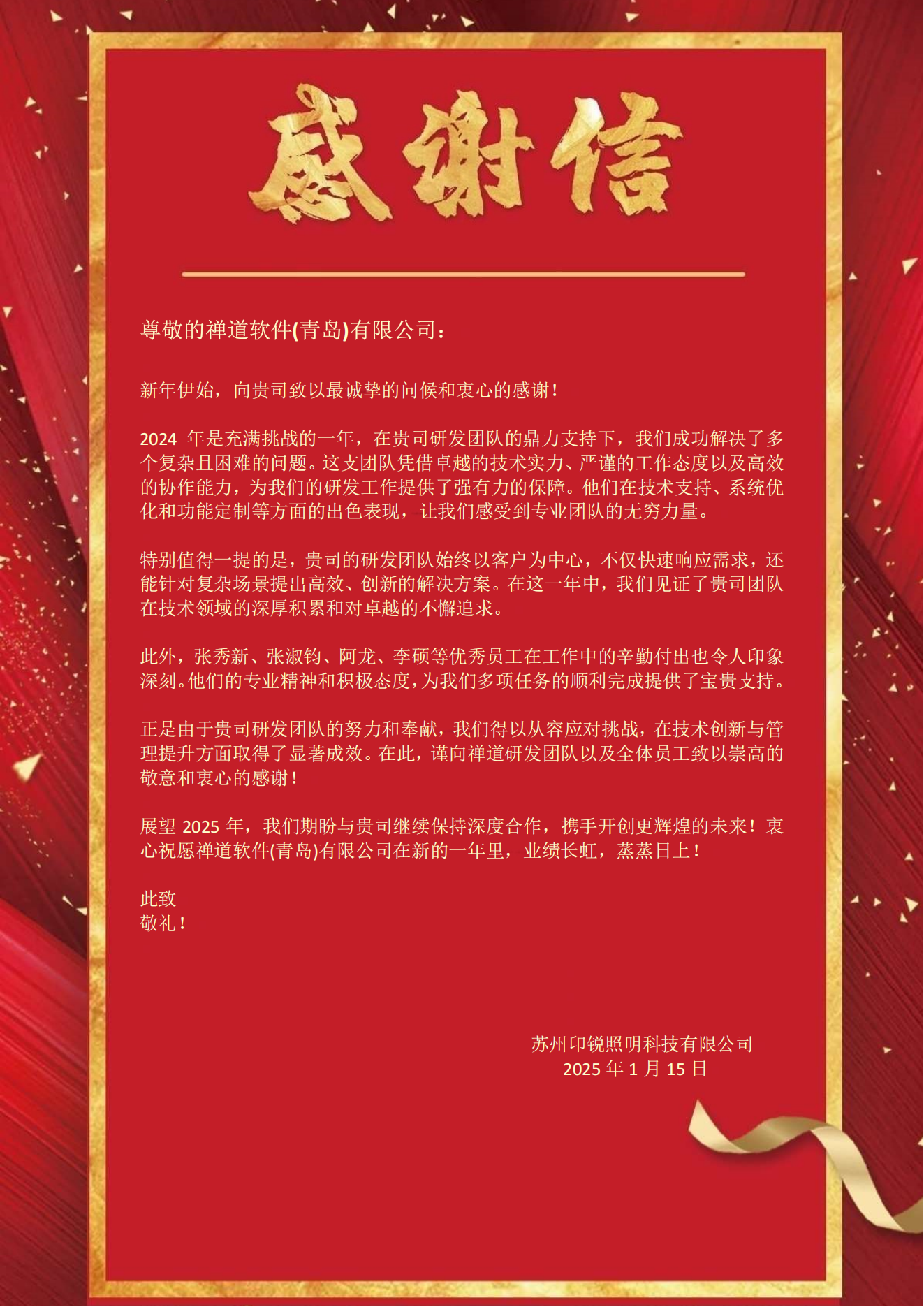 禅道客户案例感谢信