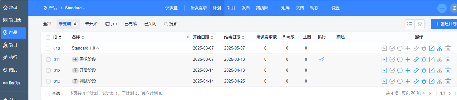 在禅道项目管理平台的助力下,产品规划不再只是纸上谈兵。围绕产品定位,产品经理梳理产品需求,规划产品发布计划及其子计划。项目关联产品计划,项目各阶段关联产品子计划,由此可清晰看到产品规划是否有项目承接落地,以及产品规划时计划开始、结束时间和实际项目落地开始、结束时间的对比,产品规划子计划的开始、结束时间和项目阶段实际的开始、结束时间的对比,让管理者对产品计划和落地情况一目了然,极大地助力了产品规划的落地跟进及团队考核,提升了产品按期交付率,提高了产品规划成功率。