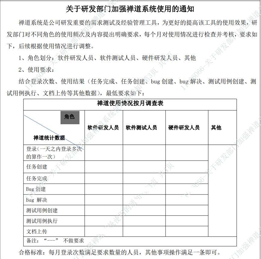2.禅道软件的推广得到了长虹新网公司管理层支持,制定了相应的制度规范来推进禅道的落地。自2022年12月份公司发布加强禅道系统使用的通知后,每月月初推进人会按通知要求对禅道导出的数据进行二次加工,获取日志操作最多的前三名及不满足通知要求的人员分别进行数额不等奖励及考核。