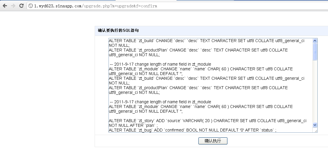 这个版本只能在新浪SAE云计算平台下面使用,自己本地服务器安装,请访问:http://www.zentao.net/article-view-79595.html