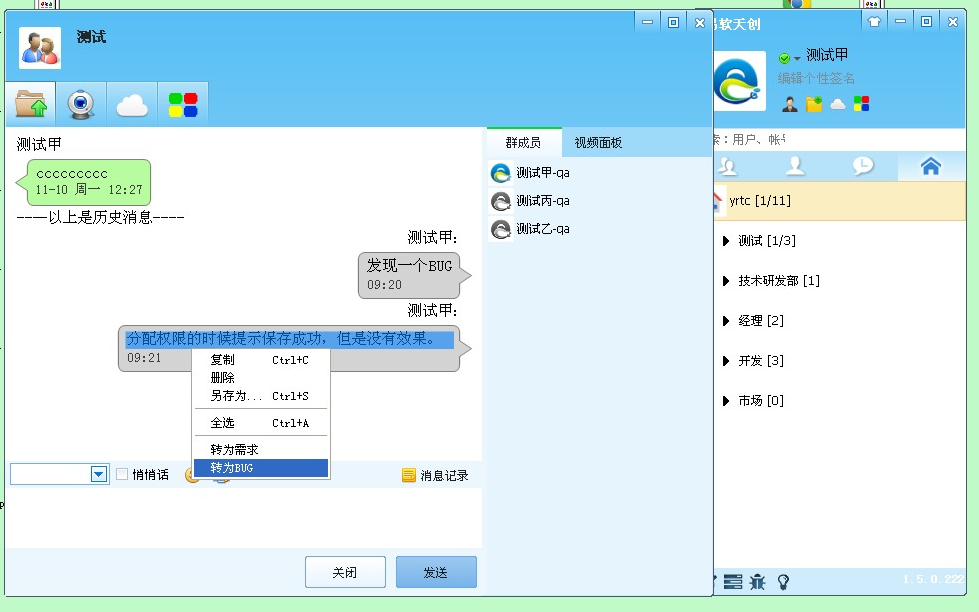 并在此基础上提供IM客户端上的任务、需求、BUG等的管理;任务、待办等消息提醒;聊天记录直接转化为BUG、需求等个性化功能。
