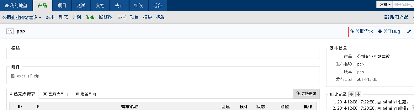 6、调整发布创建和关联需求、bug的页面。创建和编辑发布的时候,不再关联需求和Bug,关联需求和Bug作为一个单独的操作列出