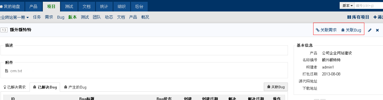 9、 调整版本创建和关联需求、bug的页面。创建和编辑版本的时候,不再关联需求和Bug,关联需求和Bug作为一个单独的操作列出。