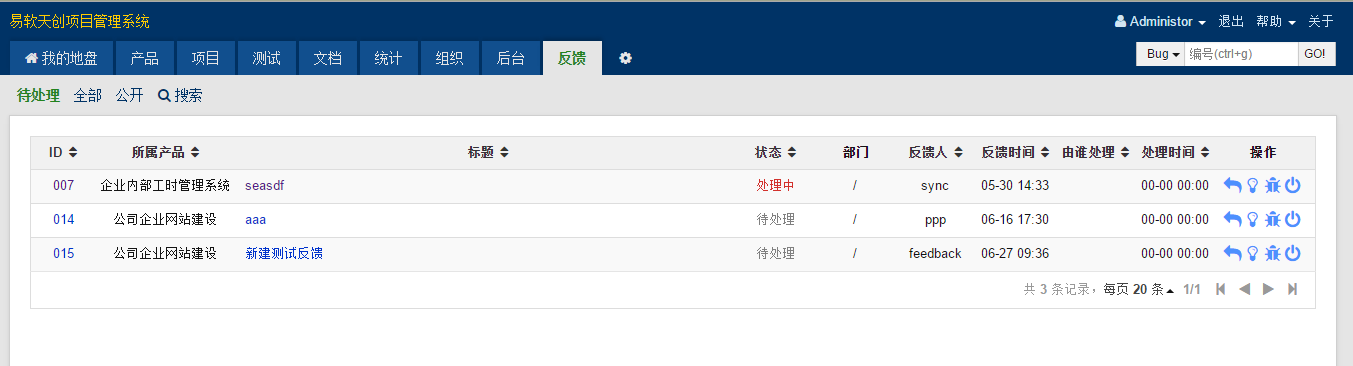 后台处理反馈列表