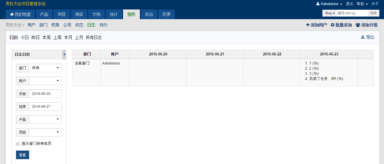 1025 组织-日志中增加可以查看某人某一时间段内日志的功能