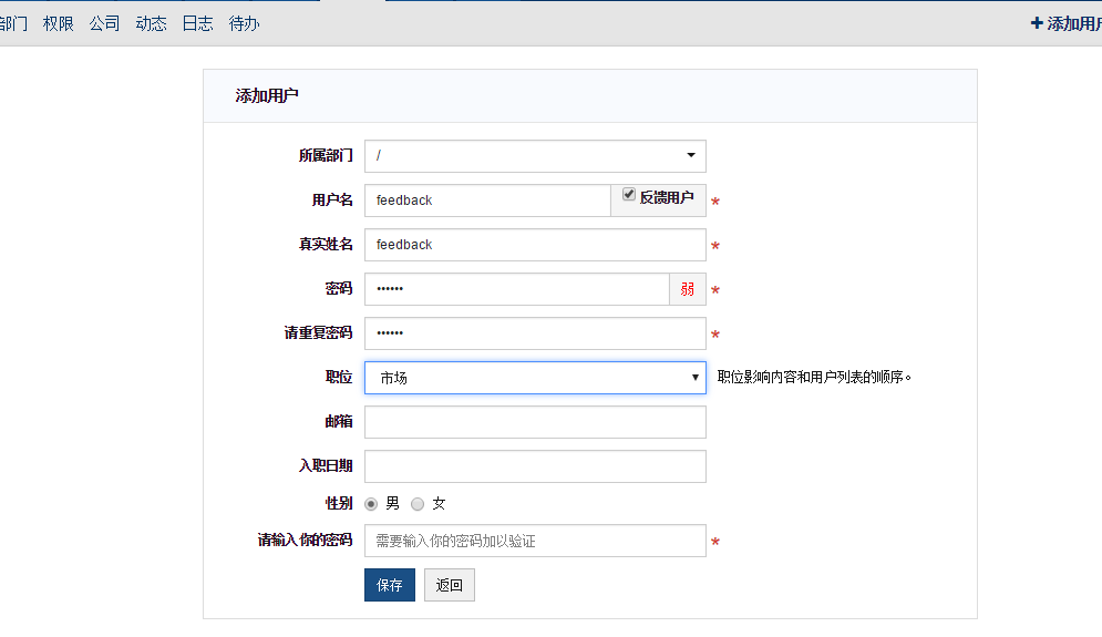 创建反馈用户
