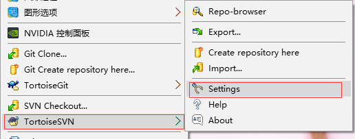 1) 打开tortoiseSVN的配置页面。