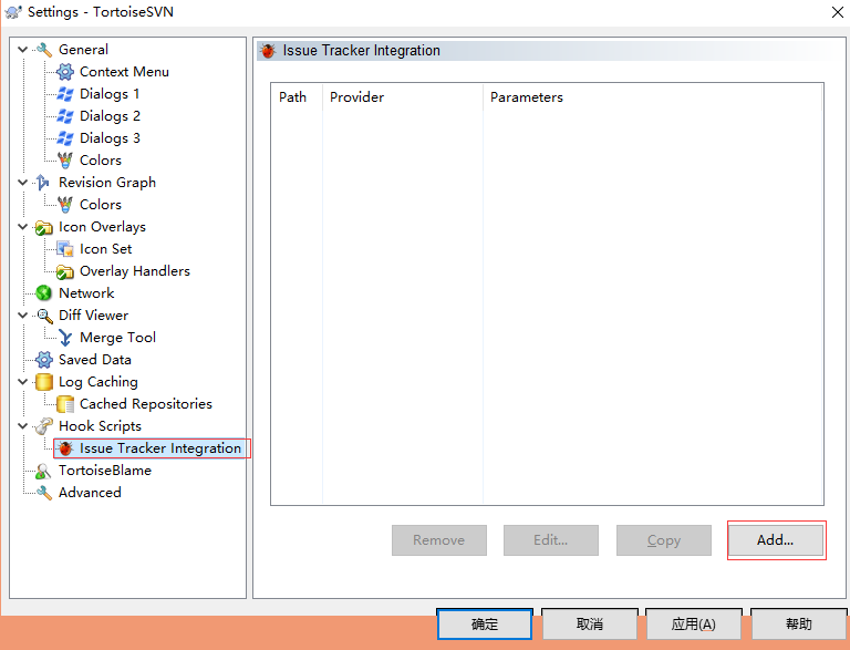 2) 找到配置页面中的 Hook Scripts -> Issue Tracker Integration,点击添加