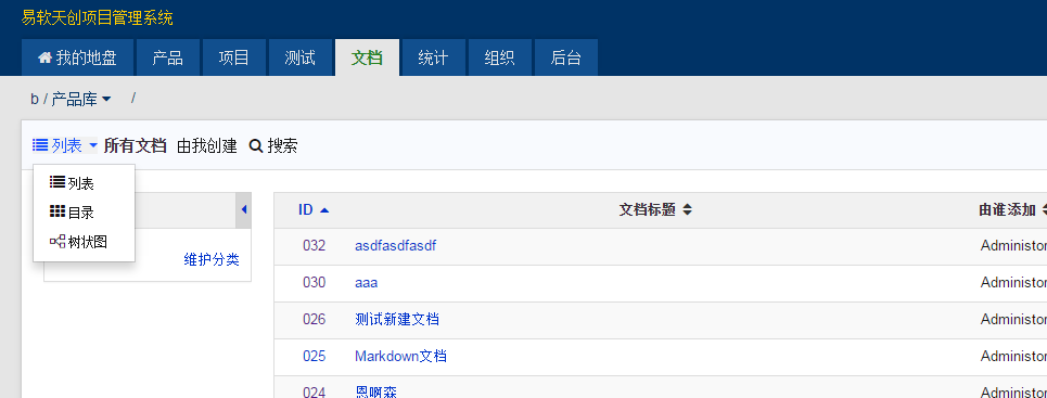 1690 产品和项目的文档分类可以分开设置。