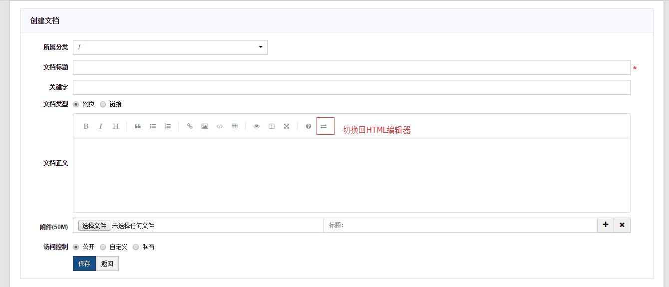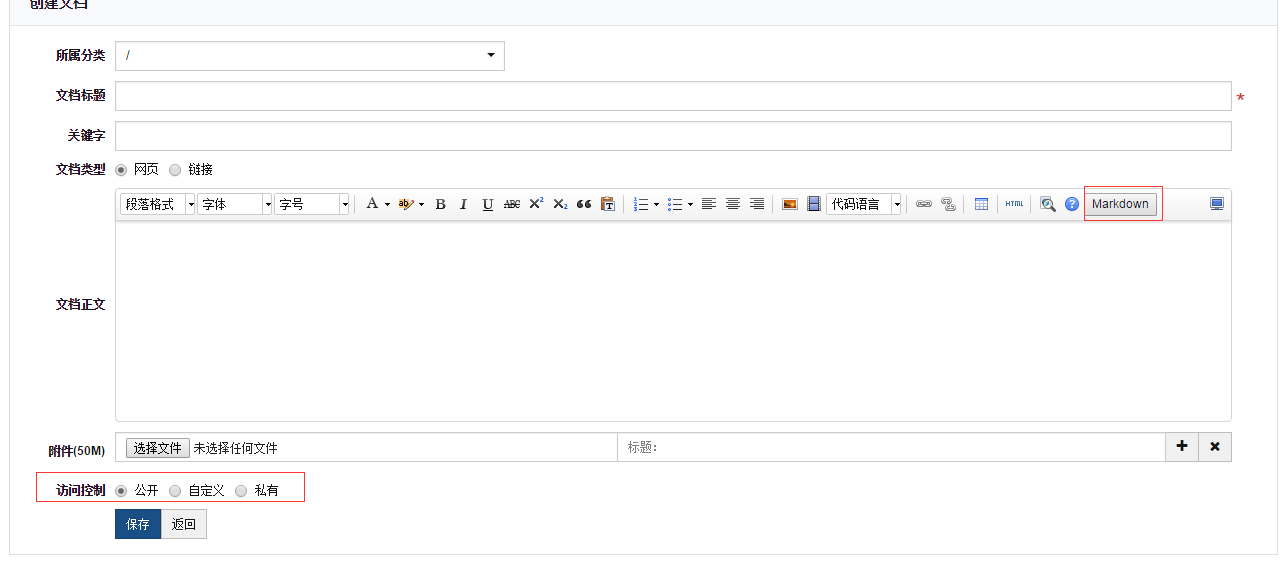 5、添加文档时,也增加权限权限控制。支持MarkDown,改用ueditor编辑器