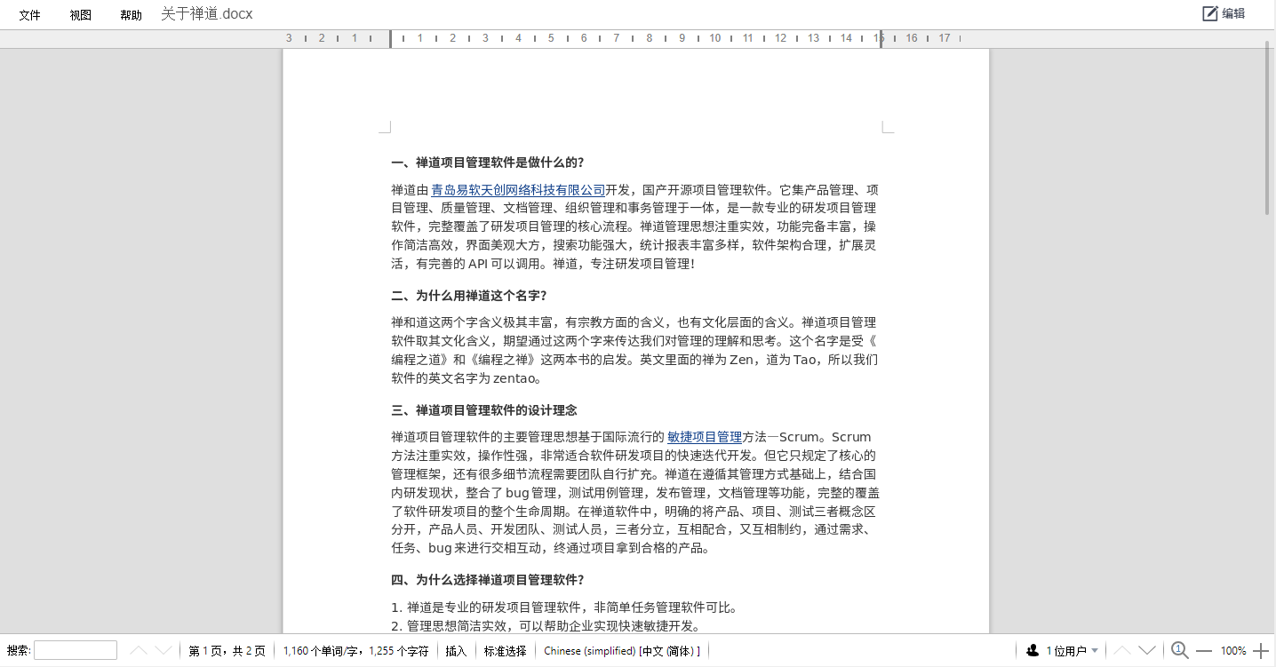 禅道企业版 2.1 版本发布,增加Office在线编辑,增加办公和运维的手机端界面
