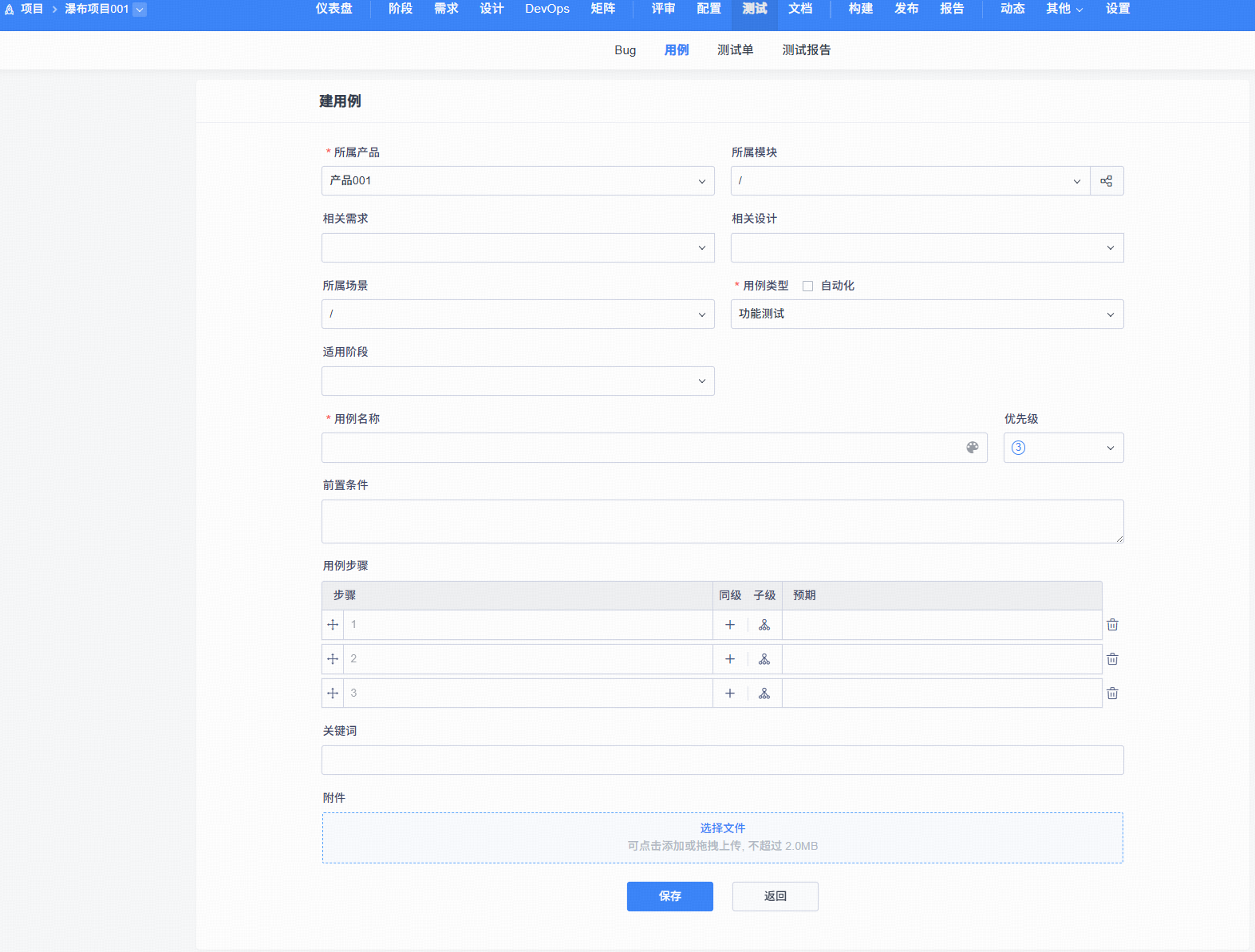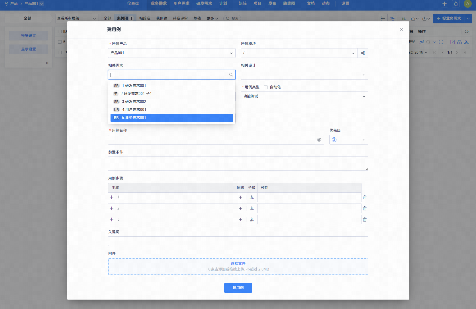 1、产品内支持不同类型(业务需求/用户需求/研发需求)、不同层级(父需求/子需求)需求拆解测试用例。