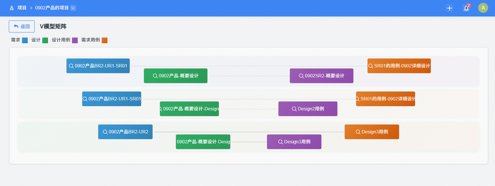 4、支持测试用例关联已有的设计,并支持在关系图谱中展示关联关系。