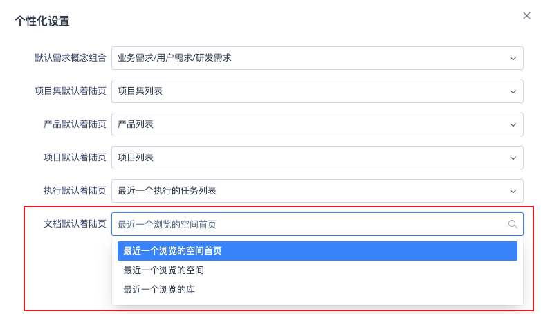 ▼在系统面板的个性化设置中,新增文档默认着陆页的设置,可以选择下次进入文档时访问的位置。