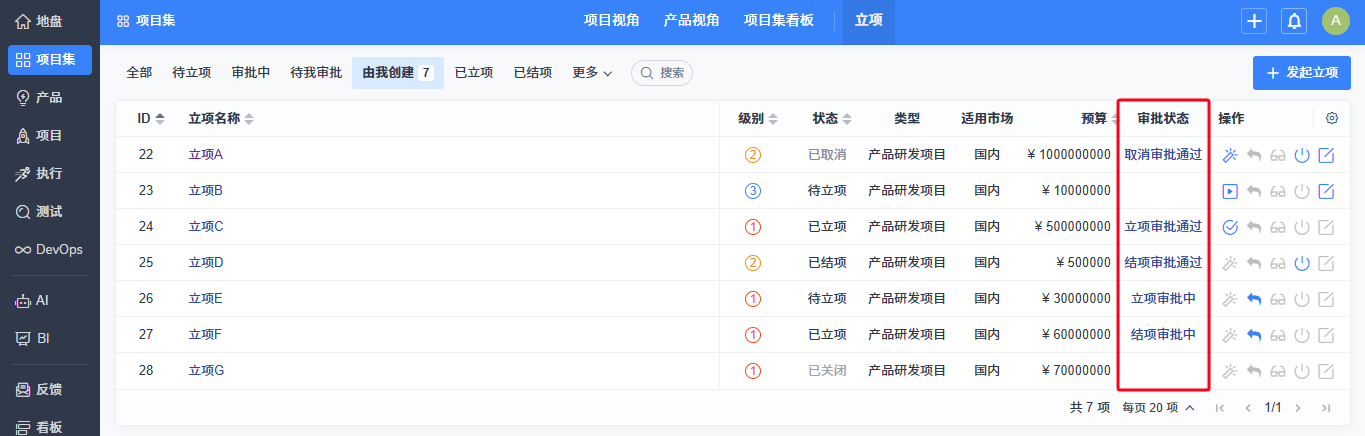 ▼支持不同阶段下的立项审批状态。