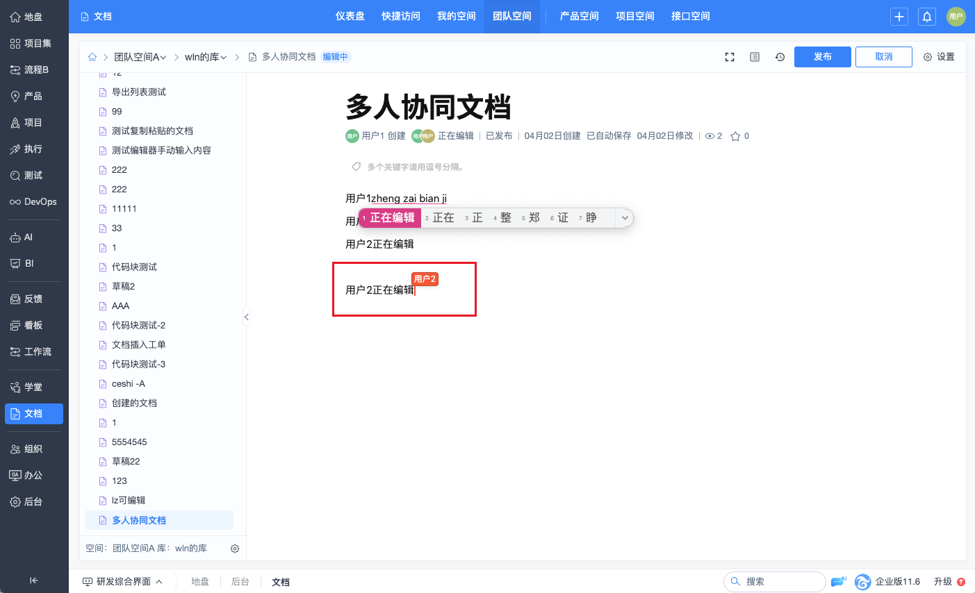 禅道企业版11.6.stable 文档无感升级,支持多人协作