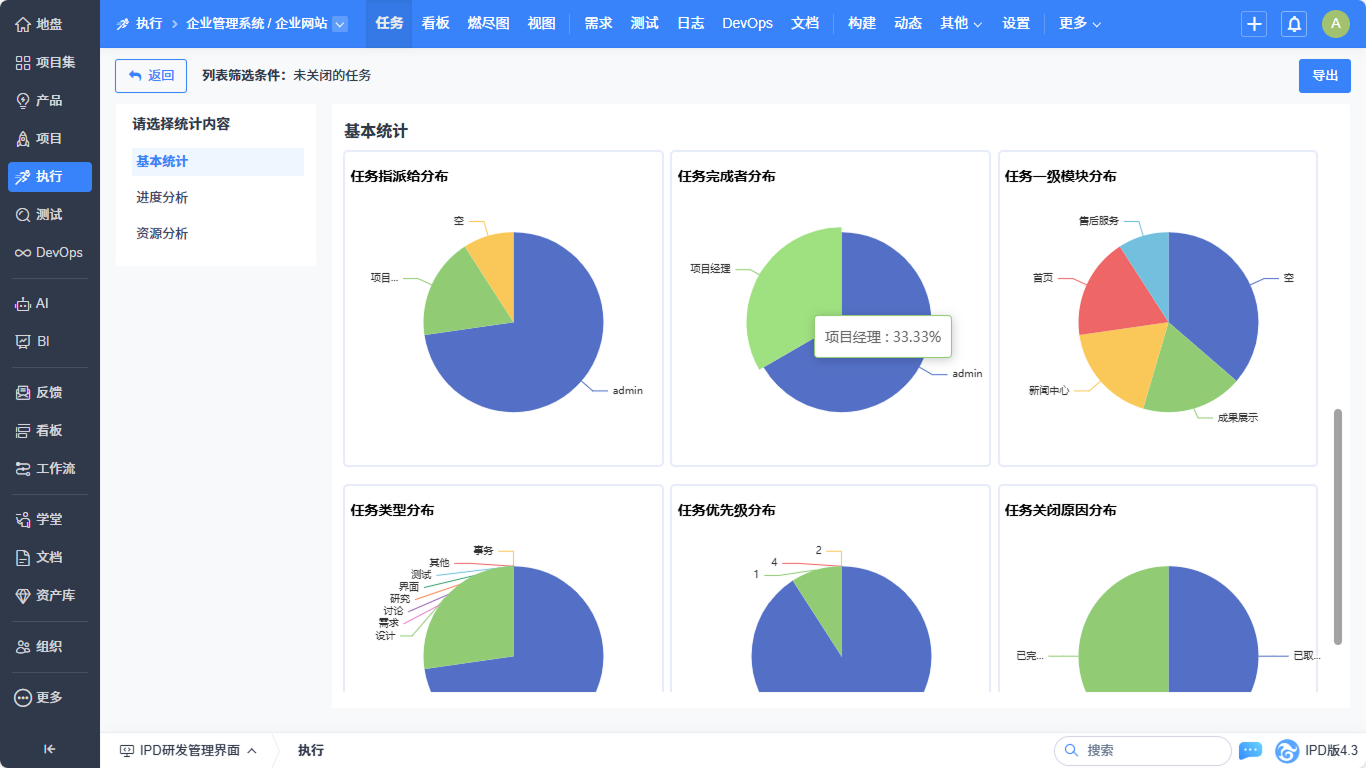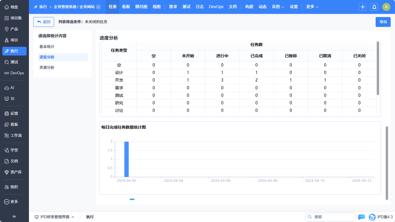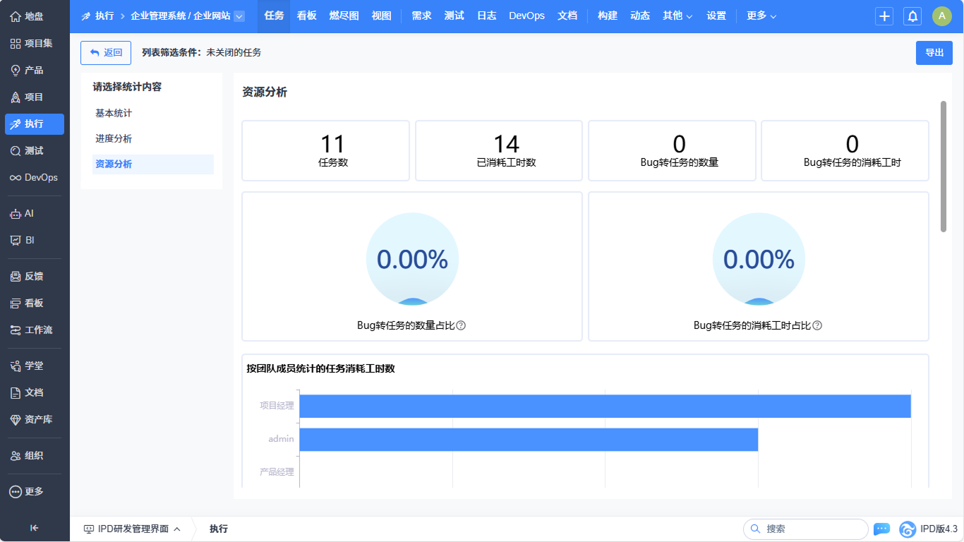 ▼执行-任务列表实现基本统计、进度分析、资源分析的统计优化。