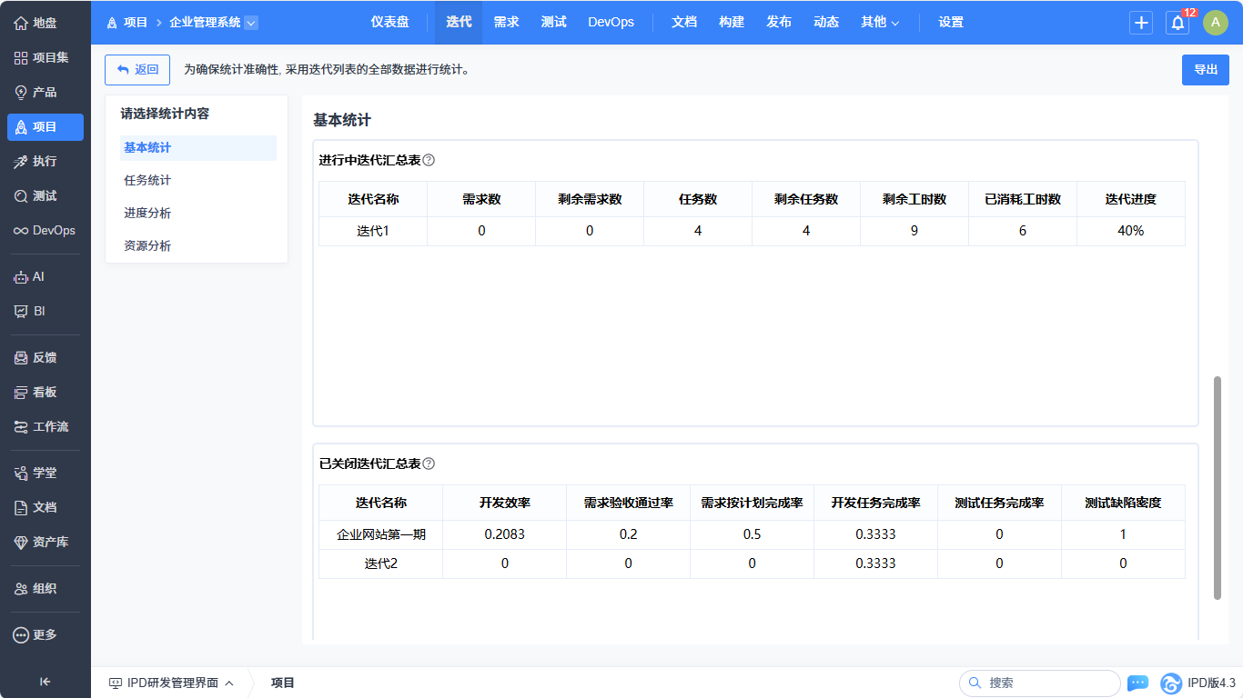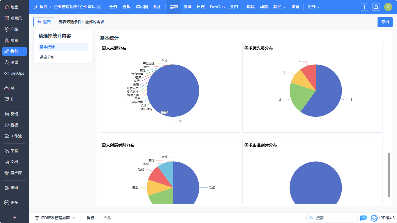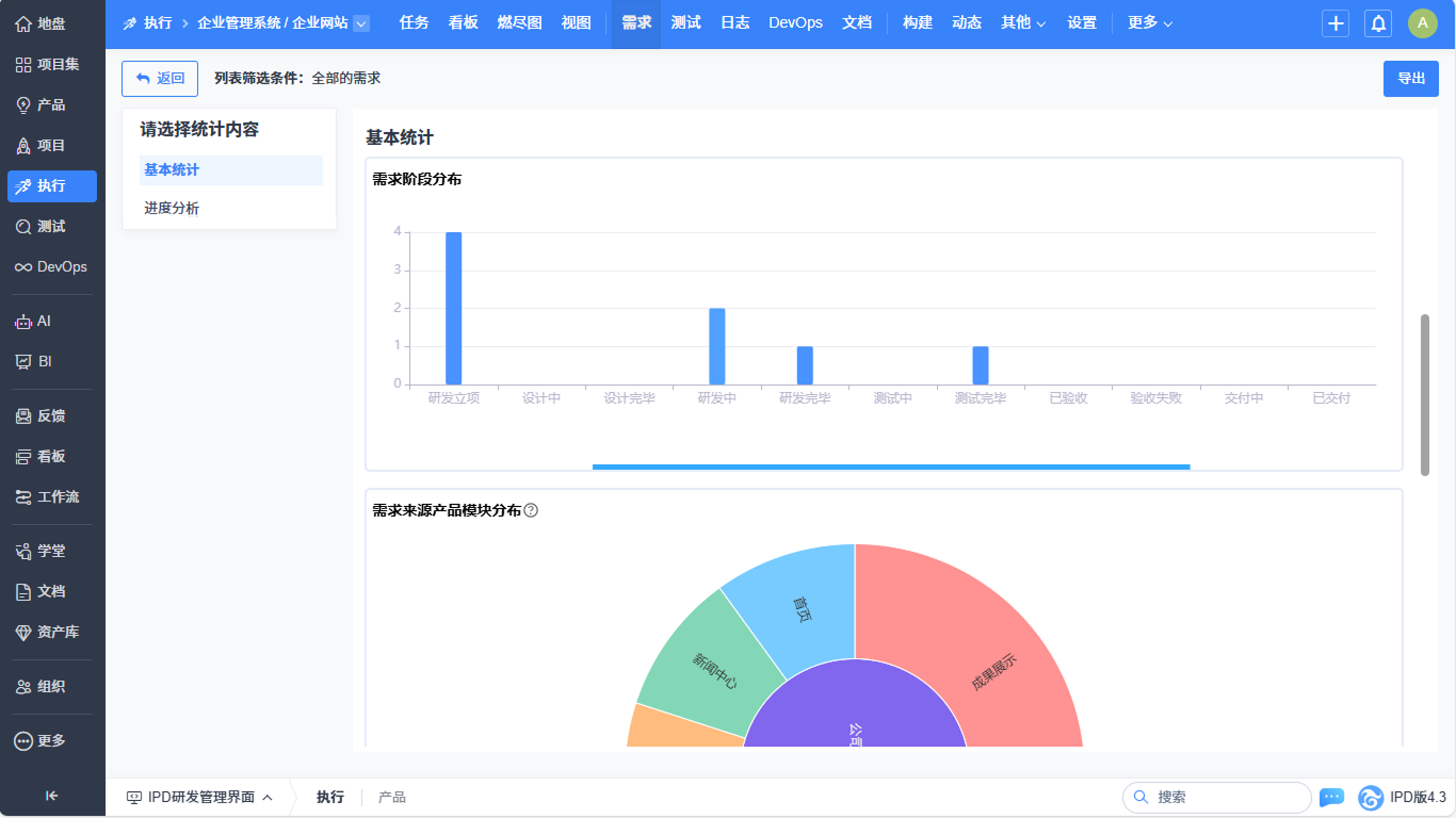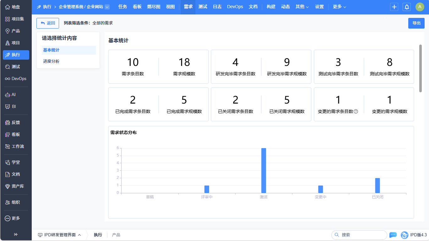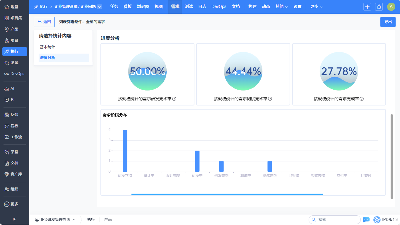 ▼执行-需求列表实现基本统计、进度分析的统计优化。