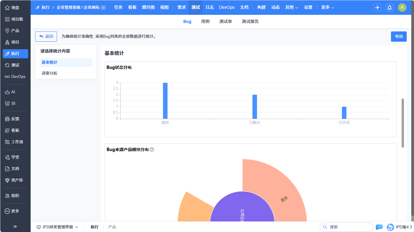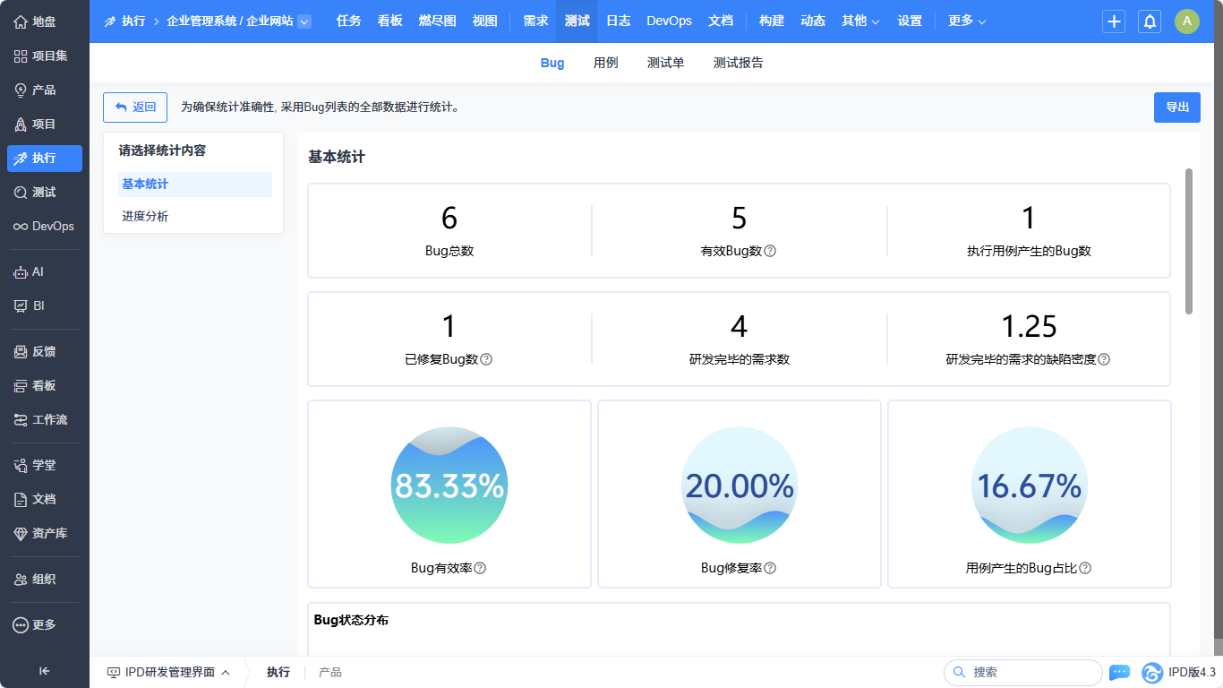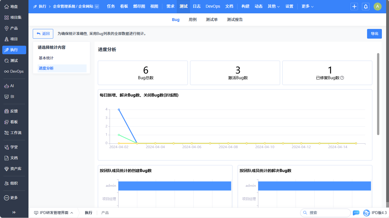 ▼执行-测试-Bug列表实现基本统计、进度分析的统计优化。