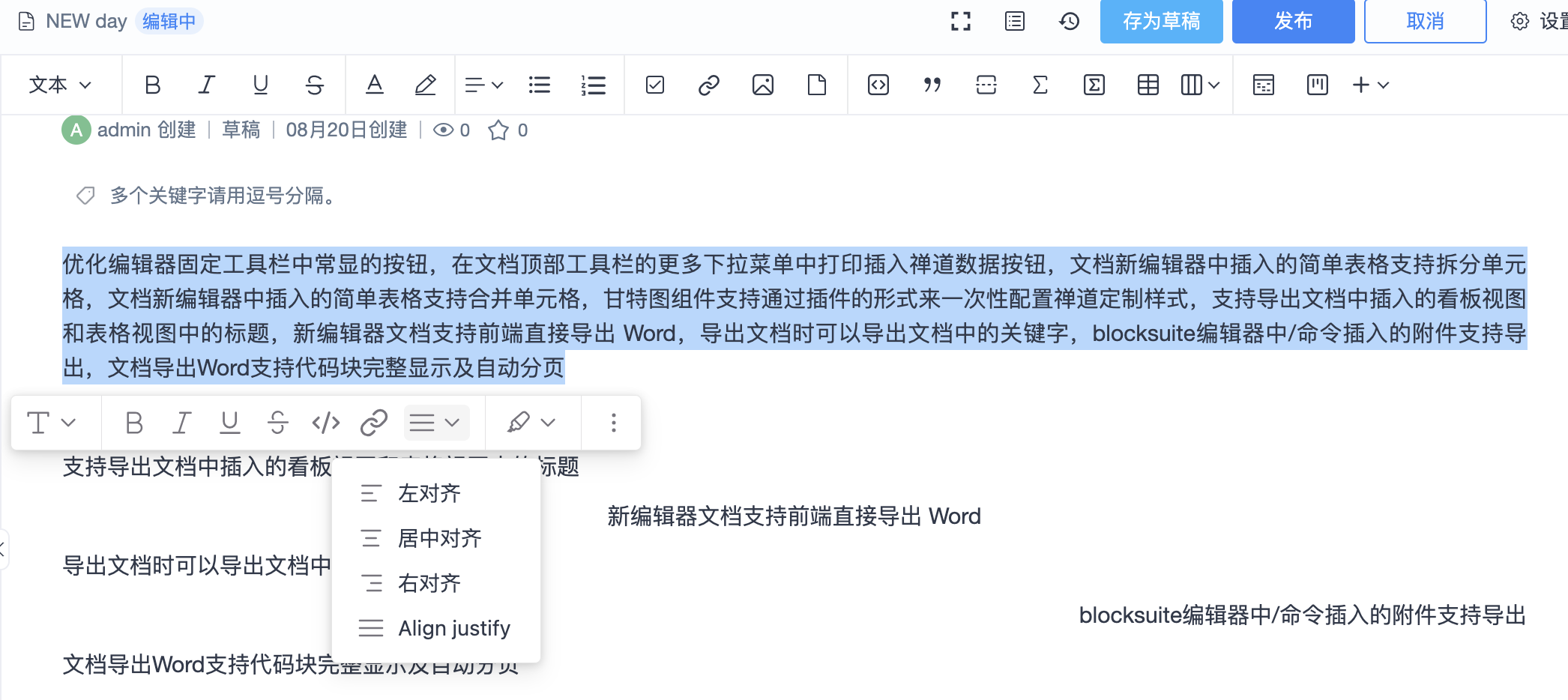 - 文档编辑器增加文本对齐功能