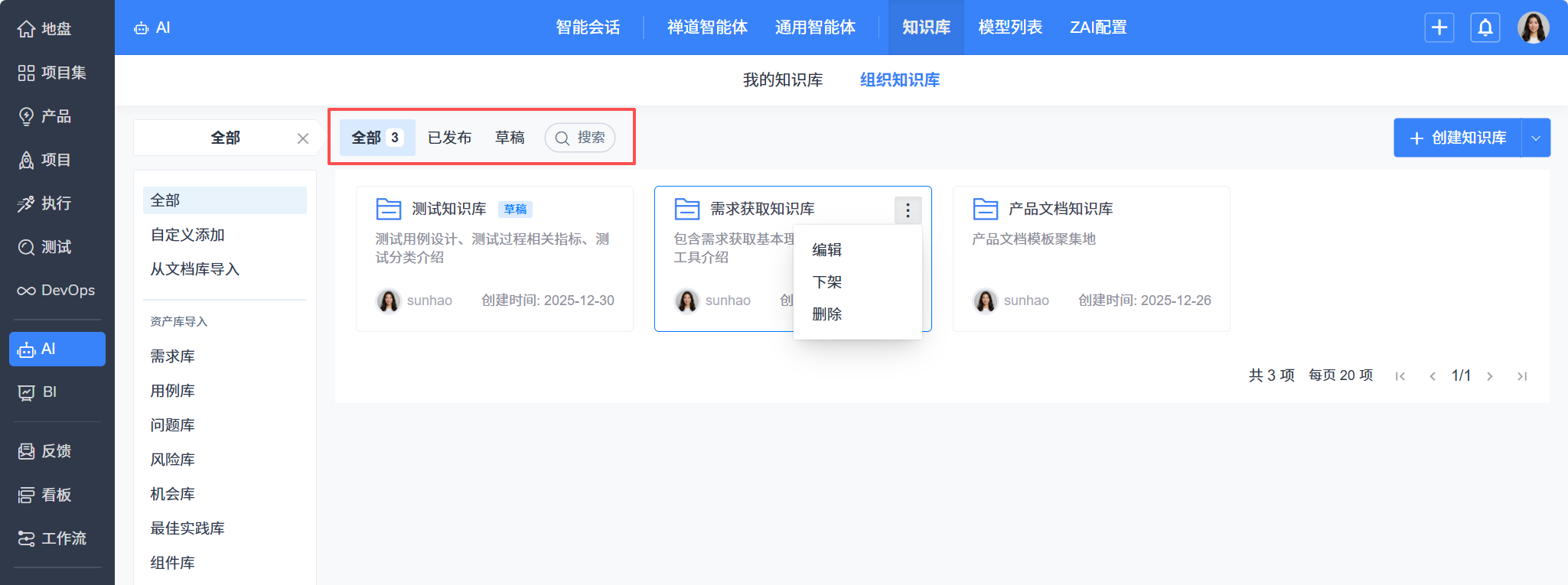 禅道企业版12.7发布,API升级到2.0版,AI新增知识库管理