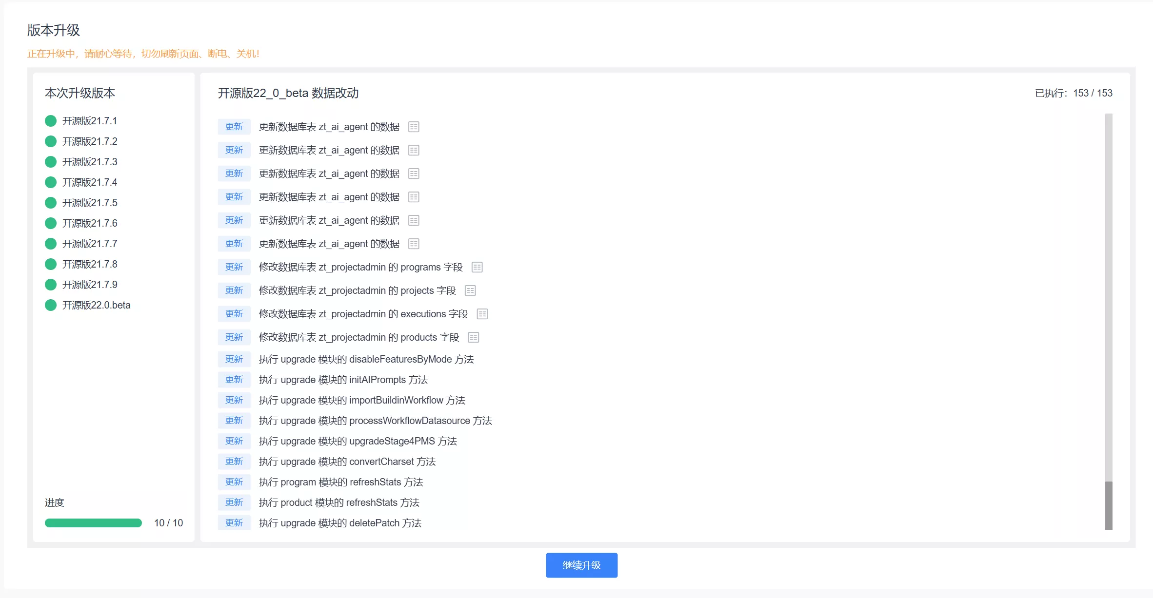 大家好, 禅道旗舰版5.0.beta发布啦!本次发布我们对项目流程能力进行了系统化升级,推出全新的「项目流程配置」功能,面向企业级项目管理场景。 对升级功能进行了交互优化与防重复执行处理,有效避免重复升级,让操作更流畅。同时,优化了部分交互体验。