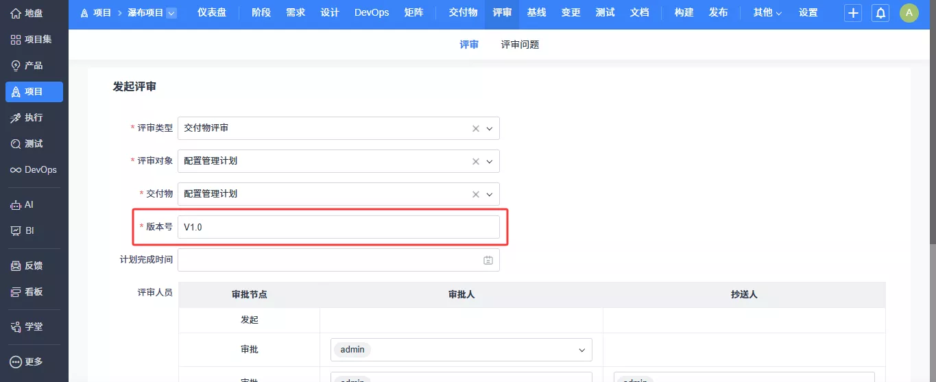 - 评审功能调整为对交付物、基线、变更进行评审