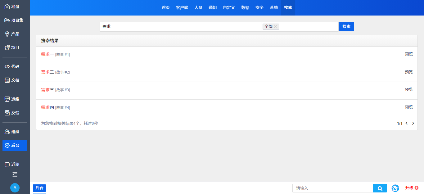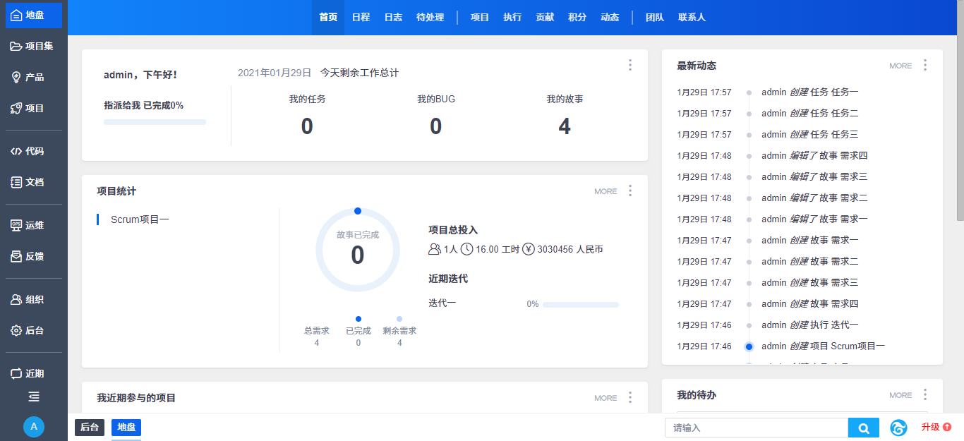 1)敏捷管理模型:项目 > 产品 > 迭代 > 任务