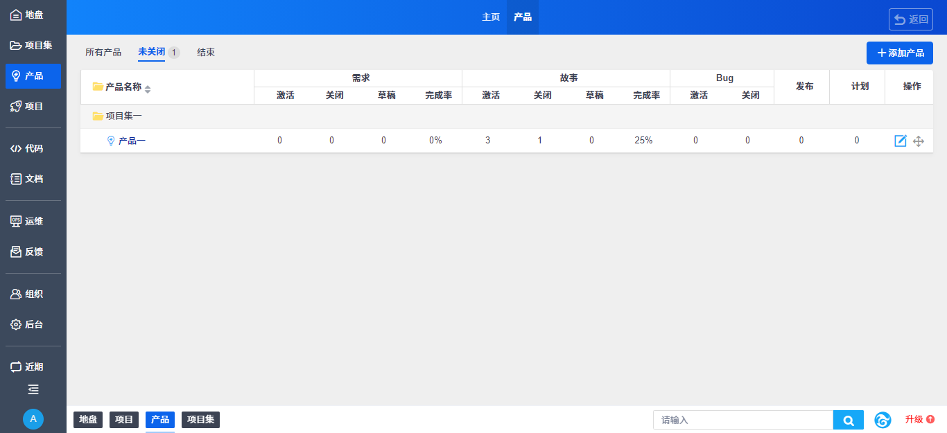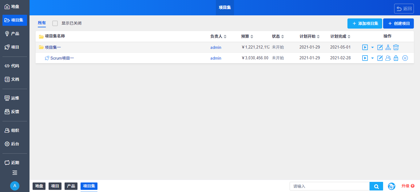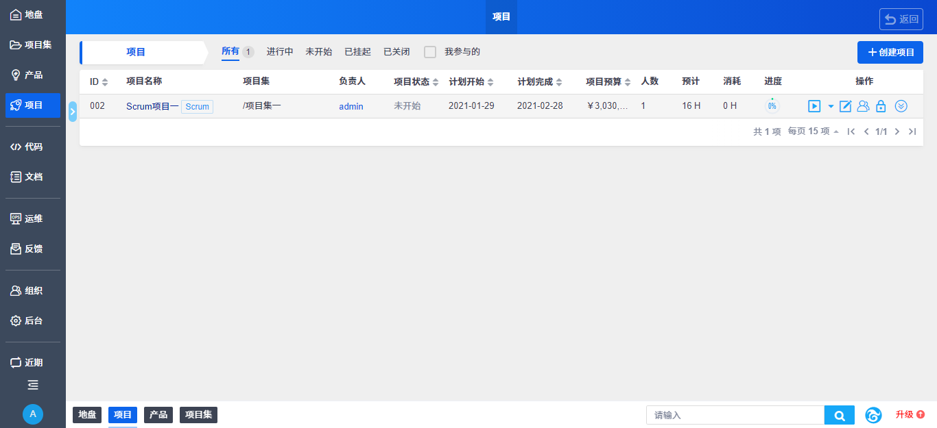 这里的“大”项目是区别于禅道老版本中的项目,禅道老版本中的项目只是一期一期的冲刺或迭代,而新版禅道中的项目中可以包含多个冲刺或迭代。