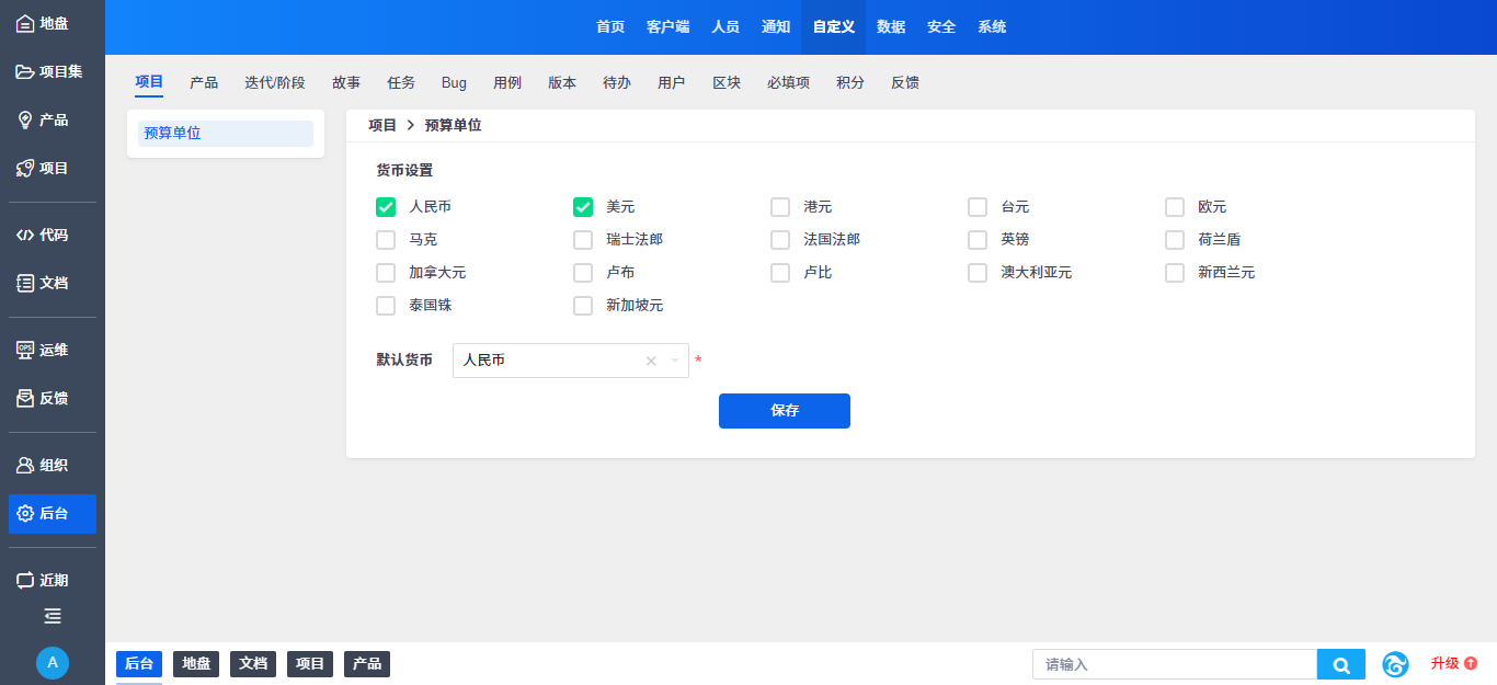 5895 预算单位只能选择启用那些货币单位,如人民币、美元、欧元,可以多选