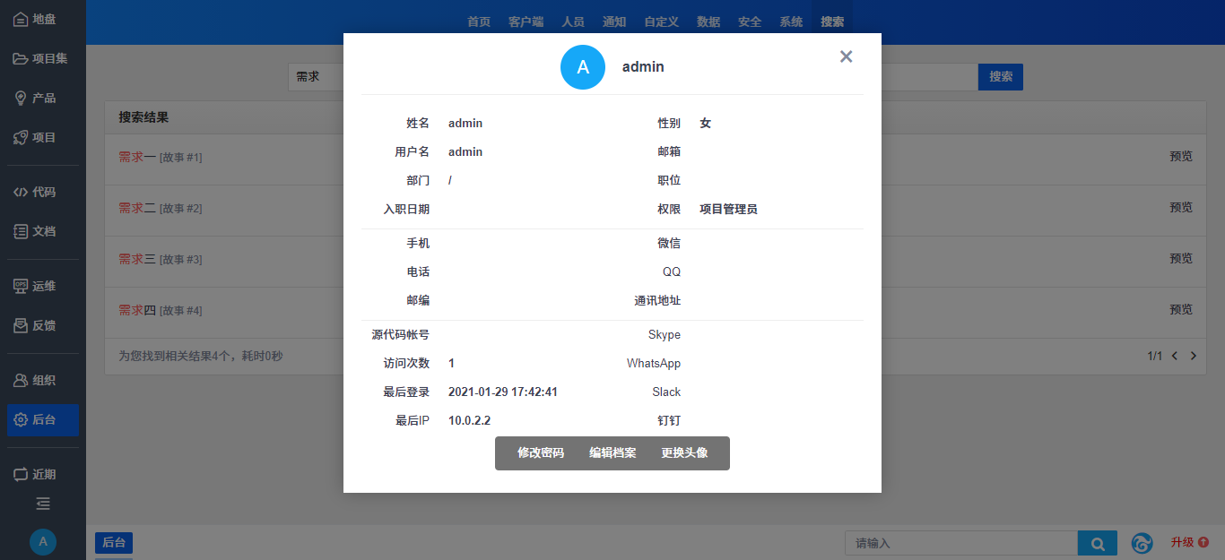 5688 项目列表中点击项目负责人可以用弹窗展示该人员的档案