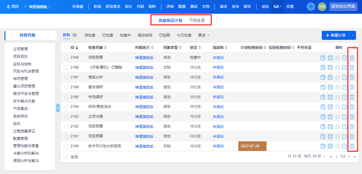 禅道旗舰版3.6.2发布了,兼容企业版7.6.1!本期针对瀑布项目进行了一些细节优化,评审增加了删除功能,支持错误数据的删除。地盘-待处理-QA增加了质量保证计划,方便及时项目检查。
