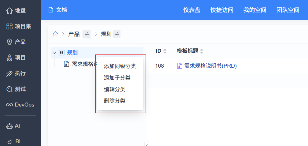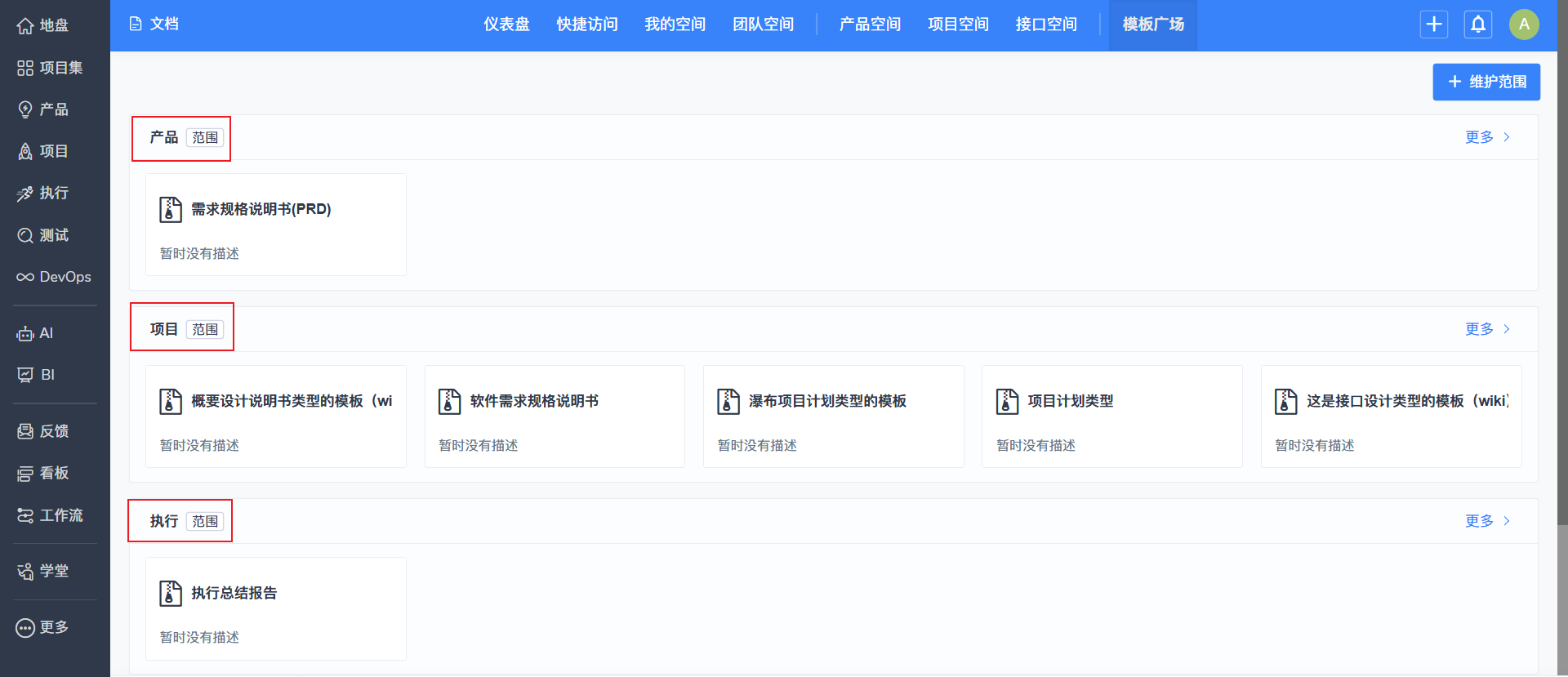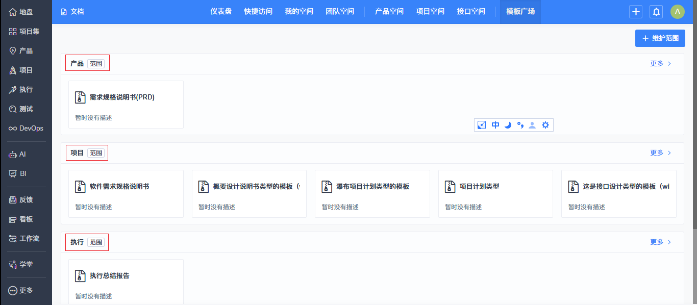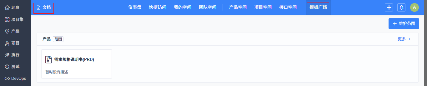 ▼文档二级菜单增加模板广场,将原后台的文档模板移至文档模块的模板广场中。